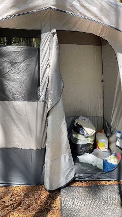 "The divided spaces make camping so much easier, no more juggling shower and toilet in one spot!" – Alex R.